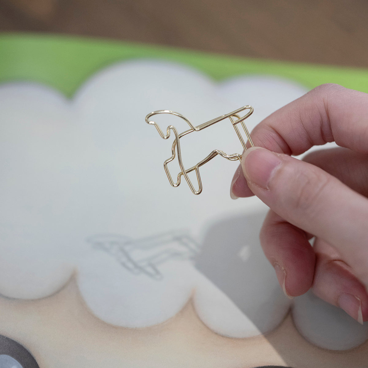 Made of stainless steel with a smooth, rounded form that won’t tear paper. Compact and versatile, it works as both a clip and bookmark—organizing documents while adding a touch of charm. Avoid excessive bending to maintain shape.